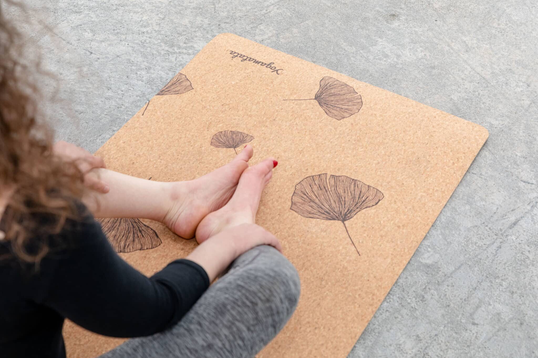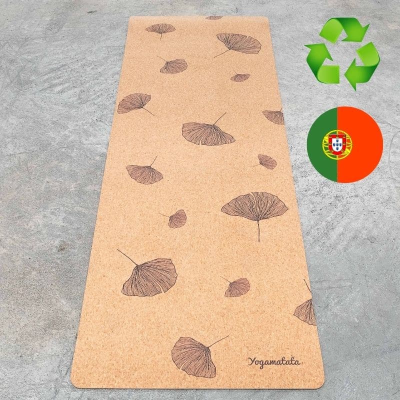 Je suis un tapis de yoga en caoutchouc naturel recyclé et liège, fabriqué au Portugal ! Je suis super antidérapant, écologique, éthique et éco-responsable.